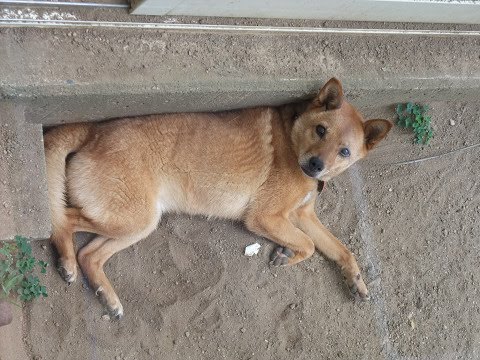 家のモモちゃんも暑さでぐったり、土は少し涼しいようで、穴を掘ってお腹をべったり土に付けてお休み中。