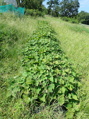 暑くなる前に敷き藁の代わりに刈草を敷き詰め